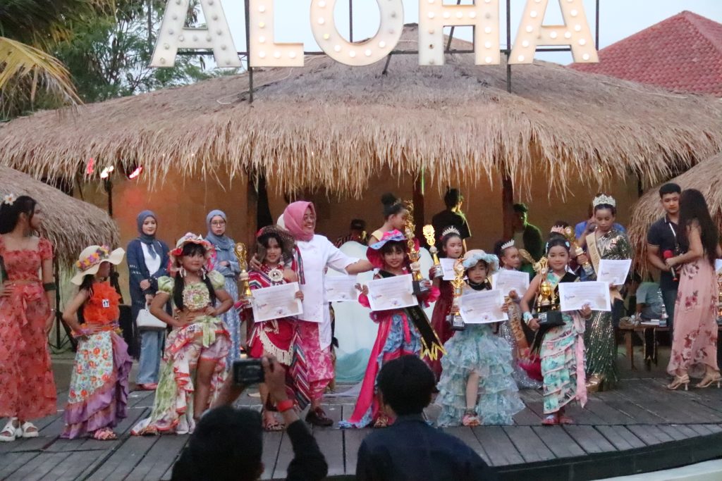 RUANGPOJOK.COM – Sebanyak 85 peserta mengikuti lomba modeling bertema busana pantai anak yang digelar Angel Model Agency di Aloha Chill and Dine, Desa Limbangansari, Kecamatan Cianjur, Minggu, 28 September 2028.