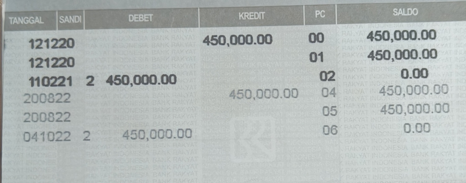 “Di tabungan ada tiga kali pencairan, tapi saya menerima dua kali,” katanya.