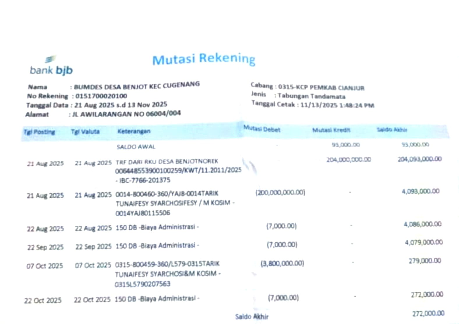 Ketegangan memuncak saat rekening koran dibacakan. Dana BUMDes yang seharusnya berjumlah Rp204 juta ternyata hanya tersisa Rp272 ribu.