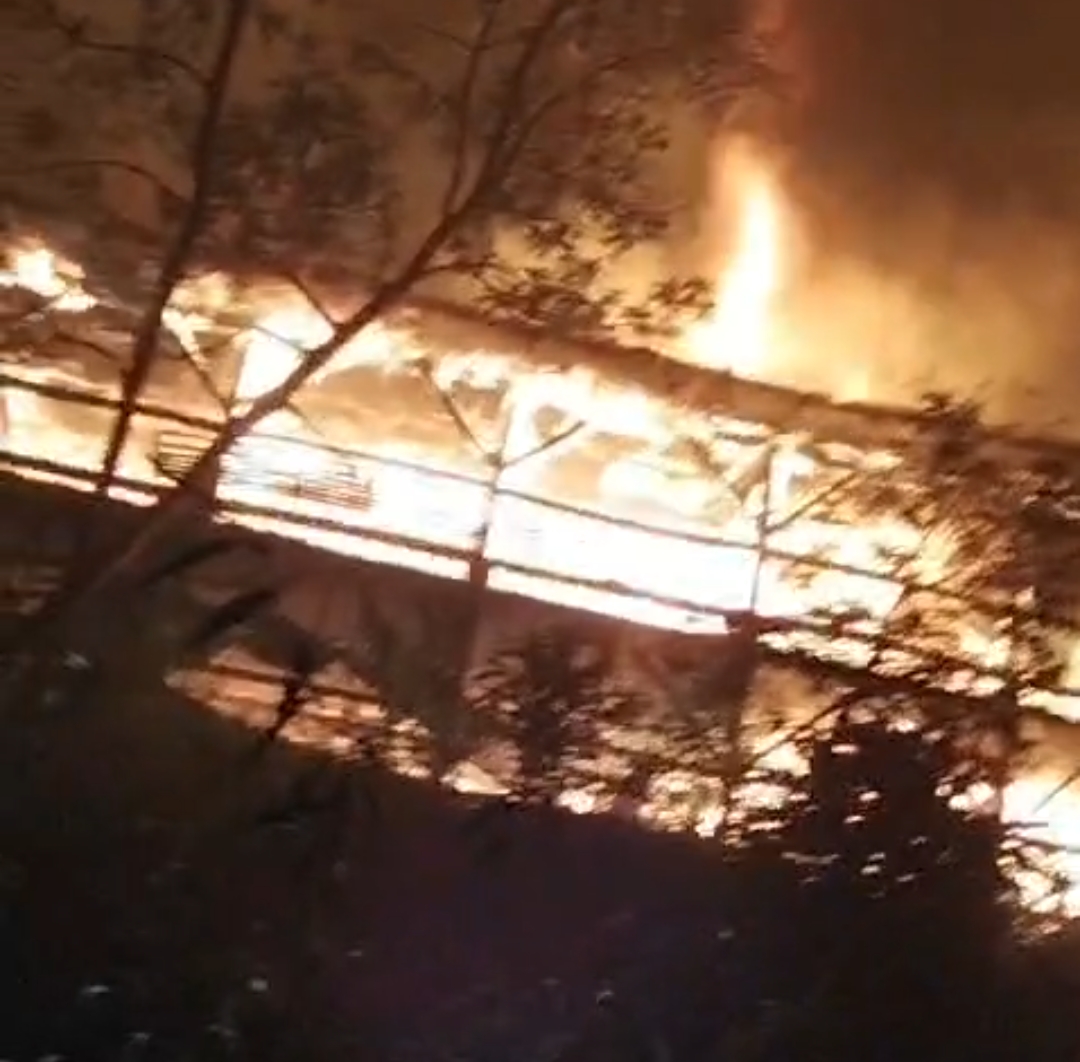 Kandang berukuran sekitar 50 meter x 10 meter dengan dua lantai itu ludes terbakar.
