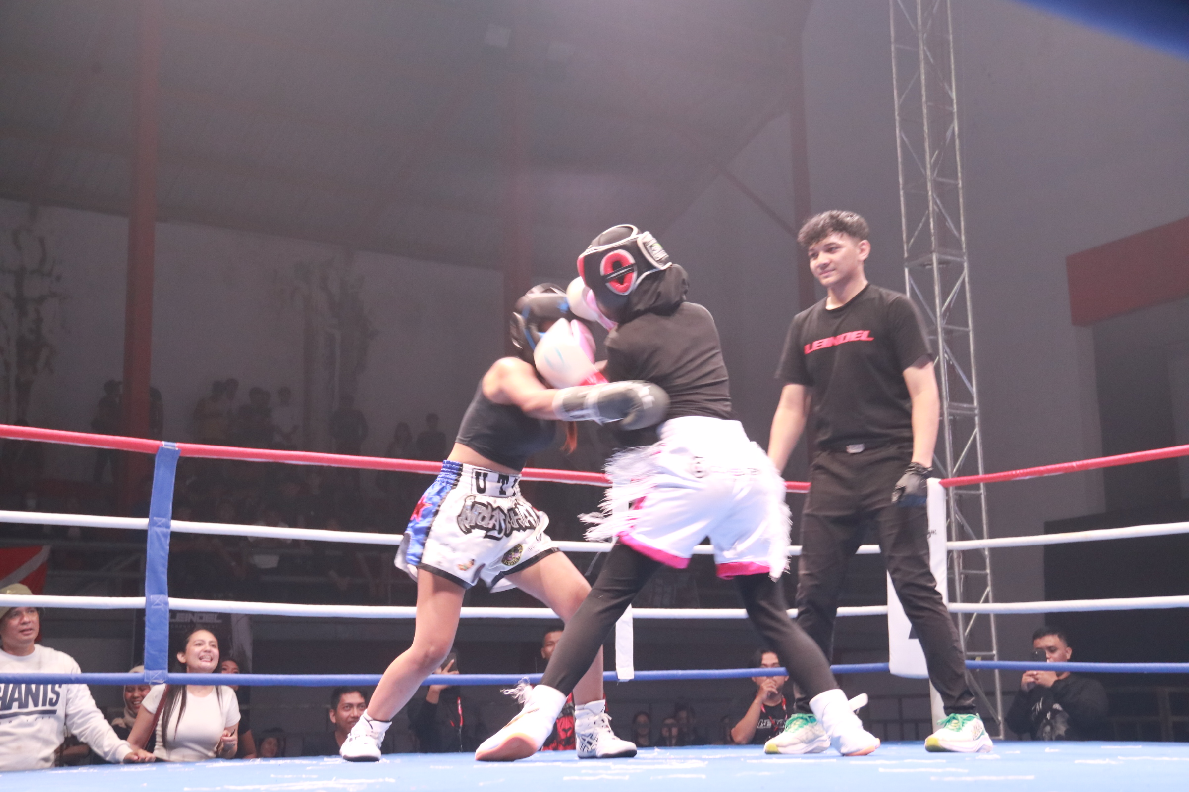 Sorak penonton menggema sejak awal pertandingan ketika para fighter saling adu pukulan di atas ring.