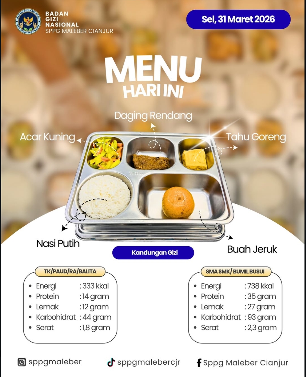 RUANGPOJOK.COM – Program Makan Bergizi Gratis (MBG) di Desa Maleber, Kabupaten Cianjur, yang disalurkan pada Selasa, 31 Maret 2026, menuai kritik warga, setelah menu rendang daging sapi untuk balita dinilai alot dan distribusi makanan menggunakan kemasan kertas nasi dipersoalkan.