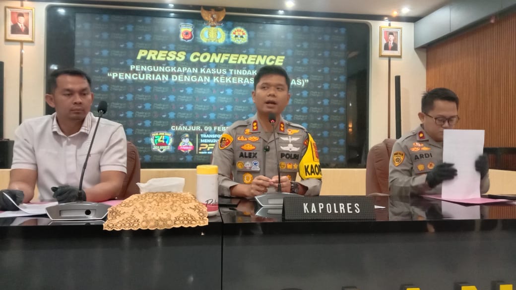 RUANGPOJOK.COM – Kepolisian Resor Cianjur mengungkap dua kasus pencurian dengan kekerasan yang terjadi dalam rentang waktu kurang dari 48 jam di wilayah Cianjur.
