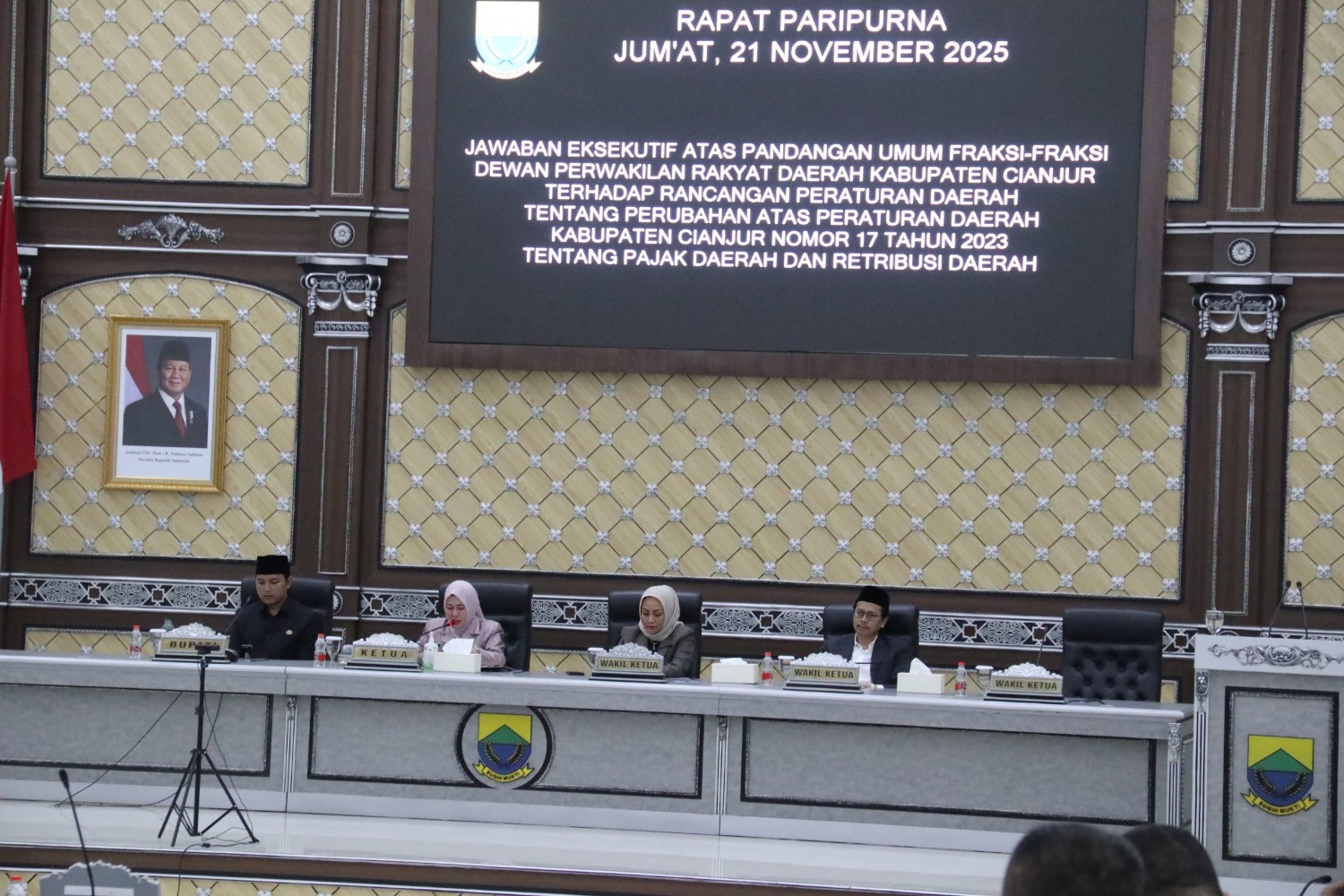 RUANGPOJOK.COM – Pemerintah Kabupaten Cianjur resmi menyampaikan jawaban eksekutif atas pandangan fraksi-fraksi DPRD terkait revisi Perda No 17 Tahun 2023 tentang Pajak Daerah dan Retribusi Daerah.