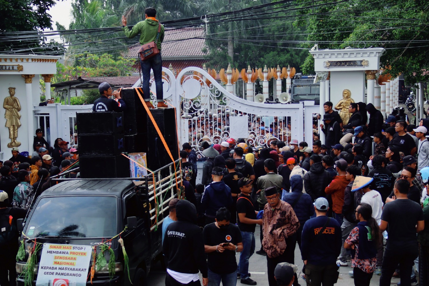 Massa aksi datang dari berbagai desa di kaki Gunung Gede Pangrango serta tergabung dalam Aliansi Masyarakat Gede Pangrango (AMGP).