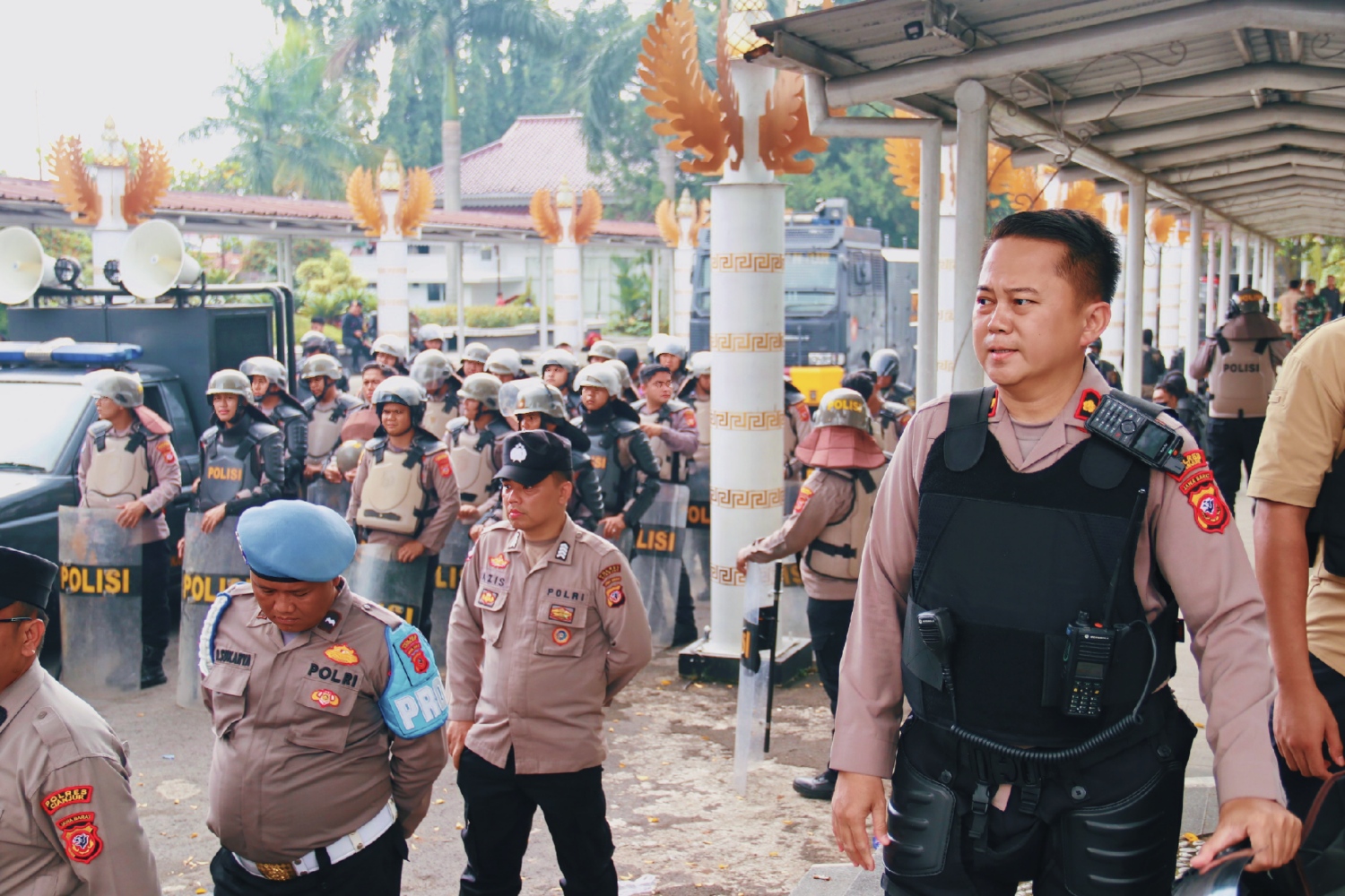 Situasi sempat memanas ketika demonstran mencoba masuk ke area pendopo, memicu dorong-dorongan dengan aparat TNI, Polri, dan Satpol PP yang berjaga ketat.