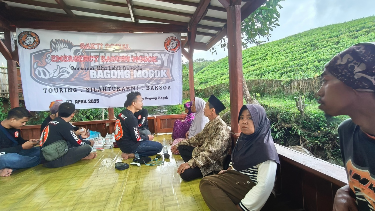 RUANGPOJOK.COM – Komunitas Bagong Mogok (BM) Emergency menggelar touring sekaligus bakti sosial pemeriksaan kesehatan gratis bagi warga di Saung Lodaya, Kecamatan Sukanagara, Kabupaten Cianjur, Jumat, 3 April 2026.
